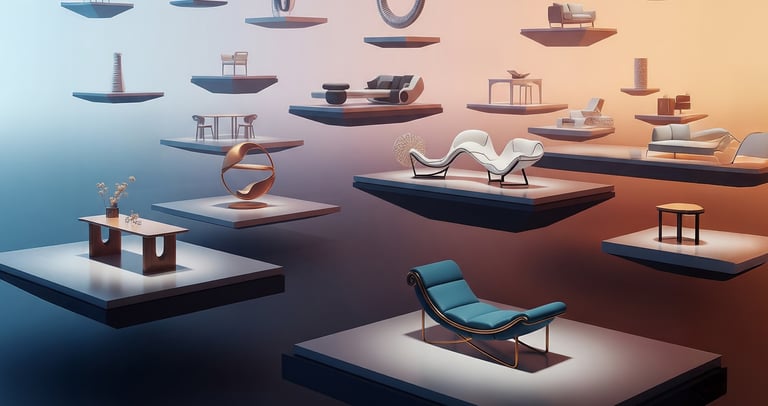 Accedete a una collezione esclusiva di arredi virtuali parallela con risorse reali o fittizie per allestimento rapido e concettuale (spazi, arredi).
